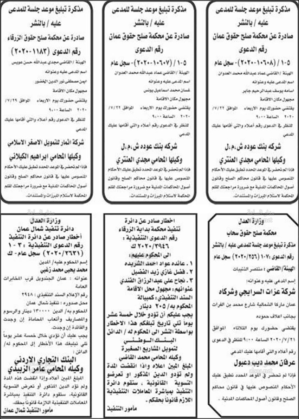 التنفيذ القضائي ومحاكم يطلبان آلاف الأردنيين راجعونا أسماء